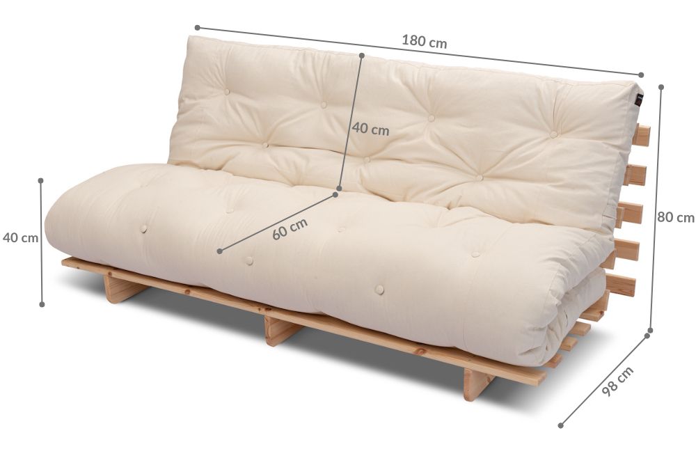 Wenn Sie den Futon auf der Bank in Form eines „S“ arrangieren, erhalten Sie ein schönes und komfortables Sofa. Nach dem Ausklappen können Sie beispielsweise Gäste übernachten lassen. Wir empfehlen die Slim-Matratzenunterlage aus unserem Angebot. Die schöne und ästhetische Ausführung spricht für die hohe Qualität des Produkts..