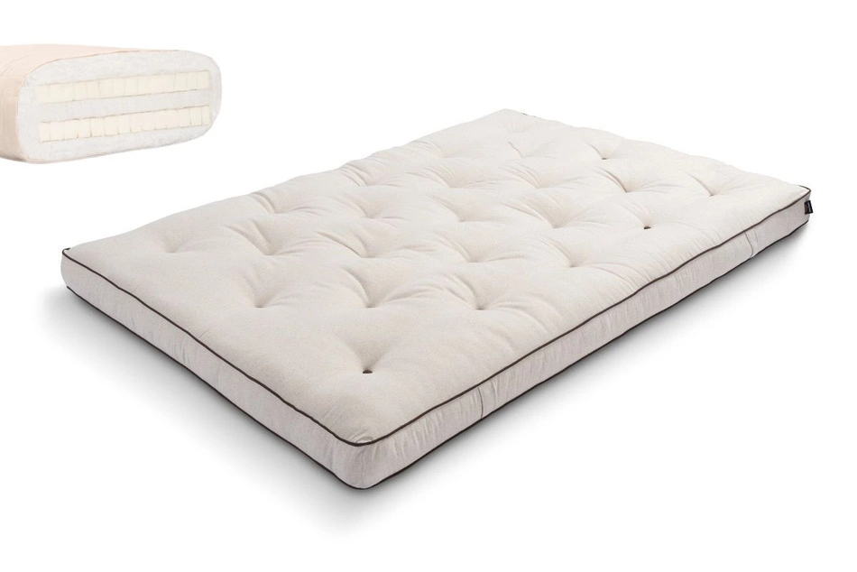 Die Füllung der Matratze besteht aus Baumwollvlies, das eine hervorragende Unterstützung für unsere Wirbelsäule bietet und dank seiner hypoallergenen Eigenschaften die Haut nicht reizt. Zwei Latexschicht erhöhen den Komfort und die Elastizität, was den Futon für den täglichen Gebrauch geeignet macht.