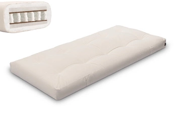 Die Comfort Hybrid Matratze stellt eine moderne Weiterentwicklung des klassischen Futons dar. Sie kombiniert traditionelle Naturmaterialien wie Baumwollvlies und Latex mit einem integrierten Taschenfederkern. Diese Bauweise sorgt für eine hohe Punktelastizität und Stützkraft, während der natürliche Charakter eines Futons erhalten bleibt. Sie ist ideal für Schläfer, die moderne Ergonomie mit natürlichen Rohstoffen verbinden möchten.